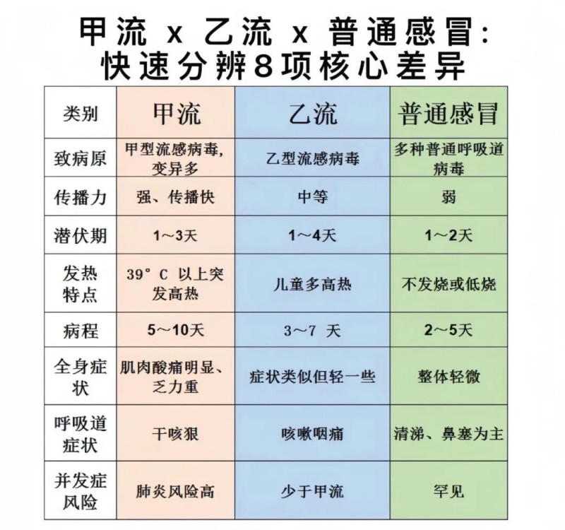 很多人分不清:到底是甲流?乙流?还是普通感冒?